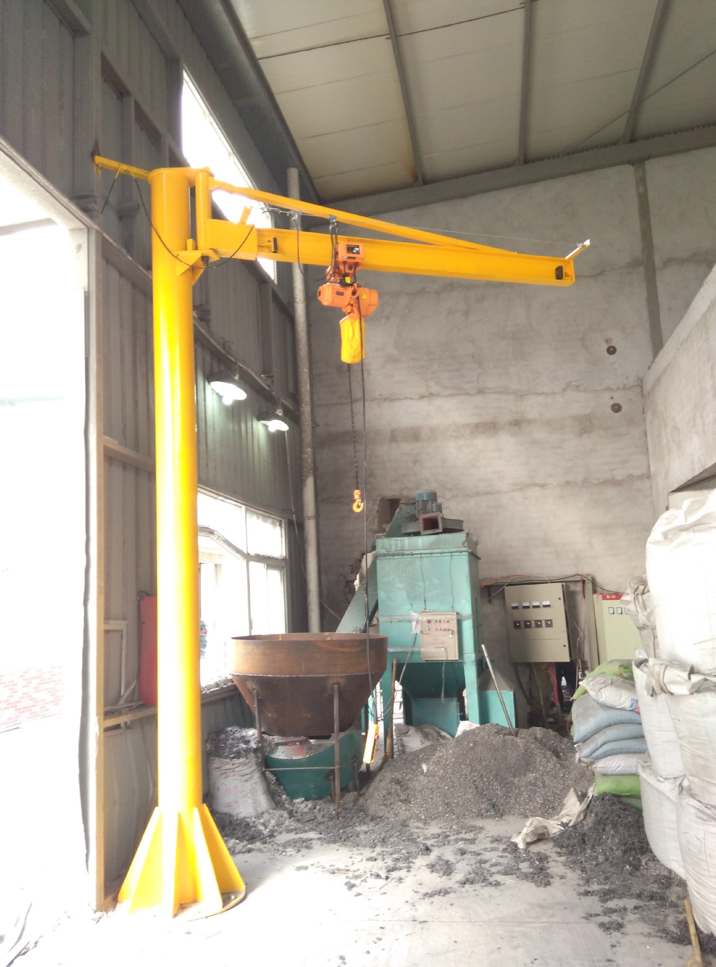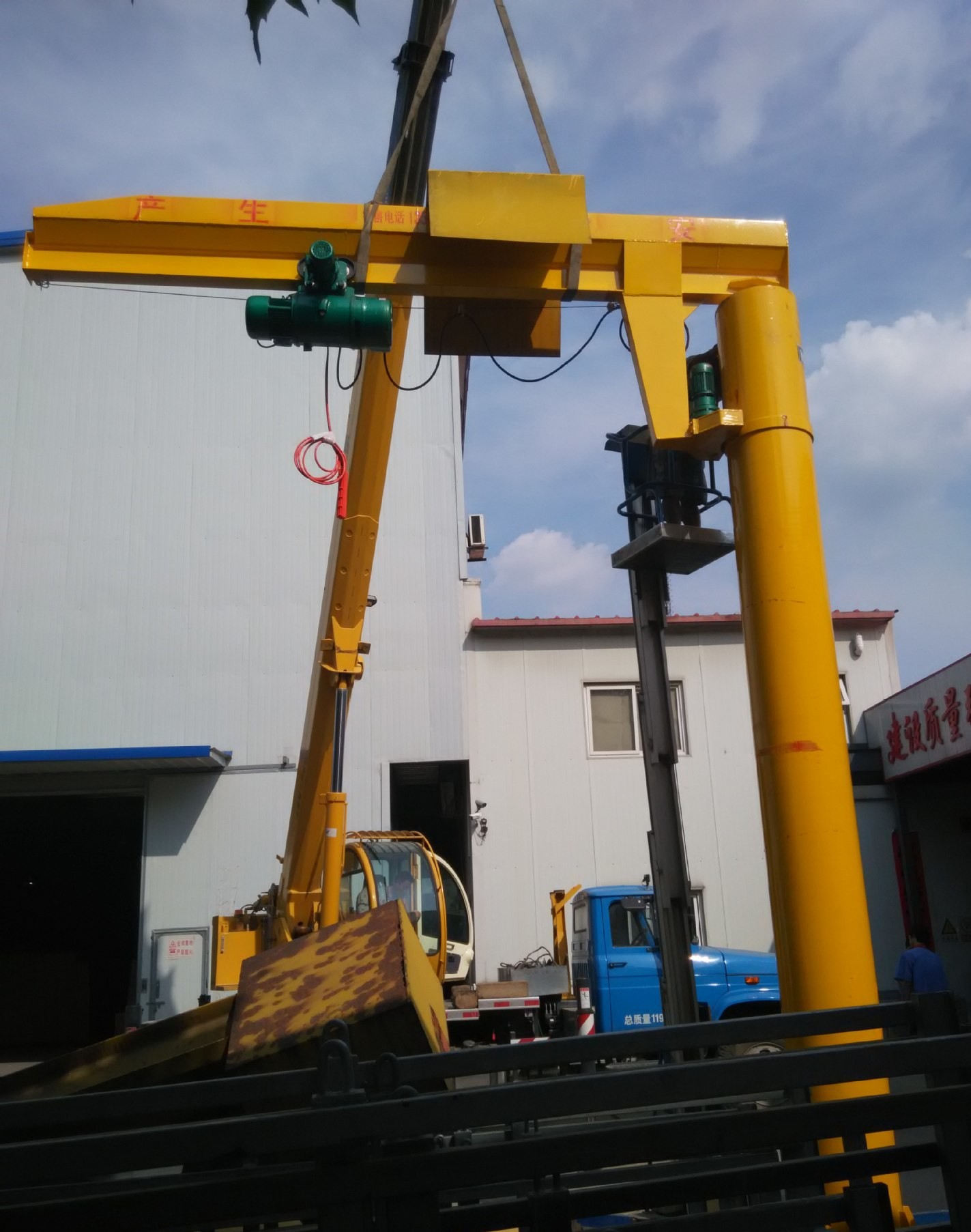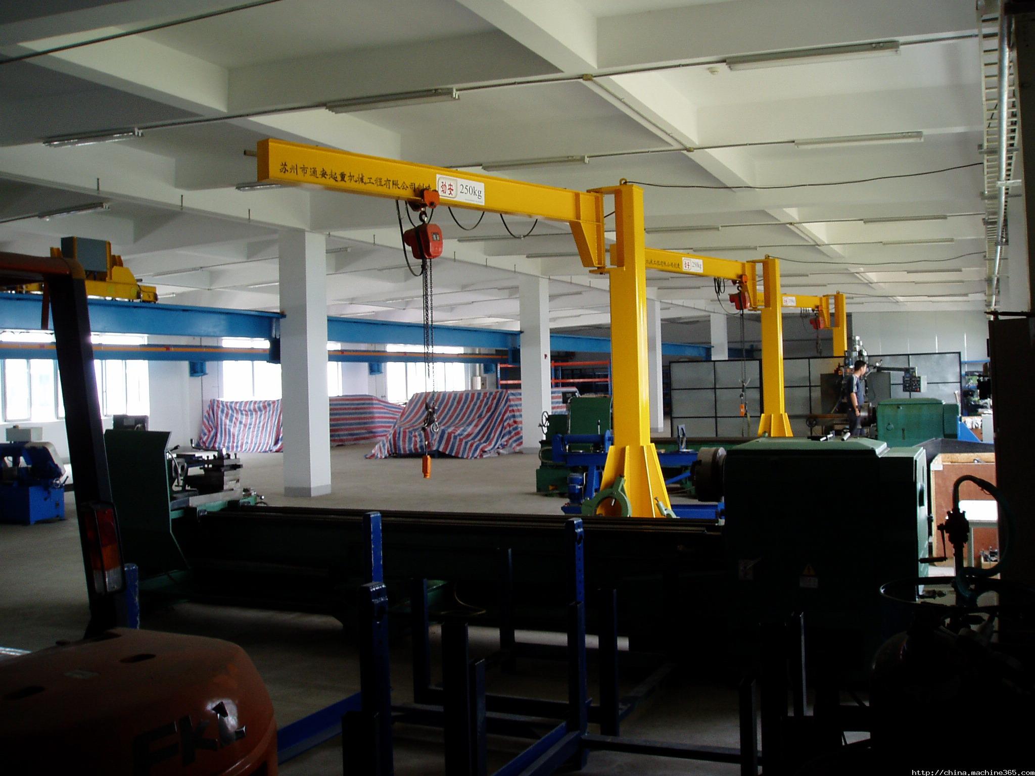 起升、運行和回轉均為電動,結構緊湊,適用于低凈空,回轉角度360°或≤270°電動定柱式起重機,設計符合中國機械行業(yè)標準,工作強度為中型,滿足JB/T 8906-1999的要求。起重機旋臂為工字鋼結構,經久耐用;結構尺寸小,特別有利于提高吊鉤行程。