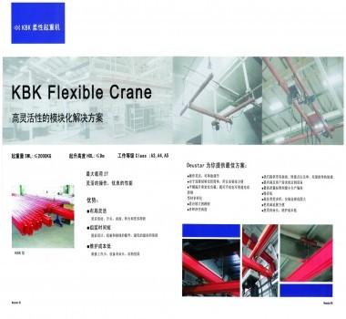 KBK柔性起重機系統(tǒng)應(yīng)用模塊化設(shè)計代替?zhèn)鹘y(tǒng)的整機設(shè)計概念,將起重機功能上基本相同的部件制成具有多種用途,有相同聯(lián)接要素和可互換的標(biāo)準(zhǔn)模塊。根據(jù)需要可組成單梁懸掛起重機、雙梁懸掛起重機、懸臂起重機、輕型門式起重機及堆垛起重機,還能組成大型自動化物料搬運系統(tǒng),安全起重范圍覆蓋125kg-2000kg。