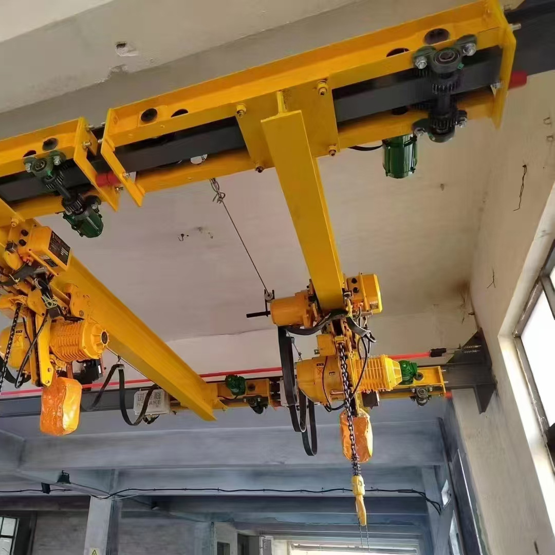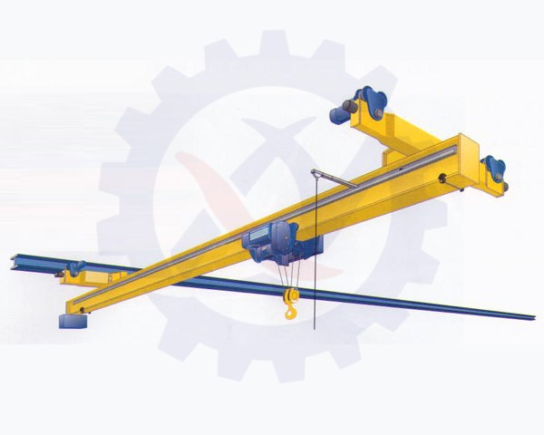 與CD1、MD1型電動葫蘆配套使用,構(gòu)成有軌運行的單梁起重機(jī)。該懸掛起重機(jī)的運行軌道使用用工字鋼,主梁兩端懸掛于工字鋼下方前后運行,是小噸位起重設(shè)備。